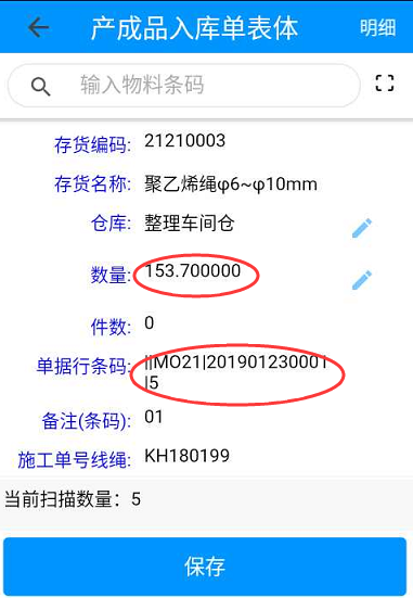 2.通過掃描《生產訂單》,生成產成品入庫單,倒庫入沖生成材料出庫單