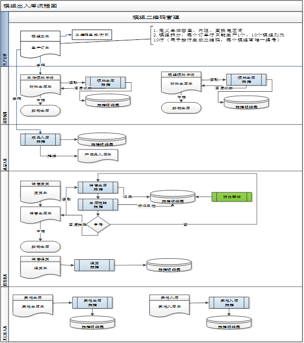 3. 成品完成后,掃描條碼入庫,實現單臺管理,實時盤庫。