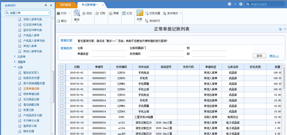 單據(jù)記賬用于將用戶所輸入的單據(jù)登記存貨明細賬、差異明細賬/差價明細賬,通過先進先出、后進先出、移動平均、個別計價這四種計價方式的存貨在單據(jù)記賬時進行出庫成本核算;全月平均、計劃價/售價法計價的存貨在期末處理進行出庫成本核算